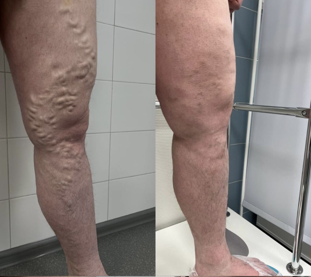 Комплексное лечение варикозного расширения вен с помощью ЭВЛК. 3 недели после процедуры.